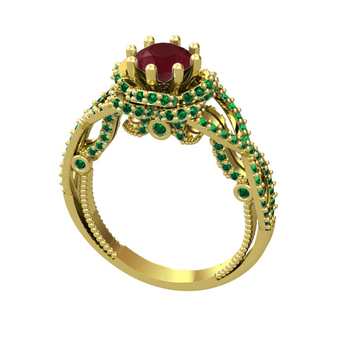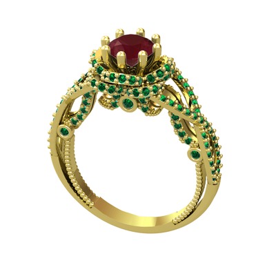 Kök yakut ve yeşil kuvars 14 ayar altın yüzük