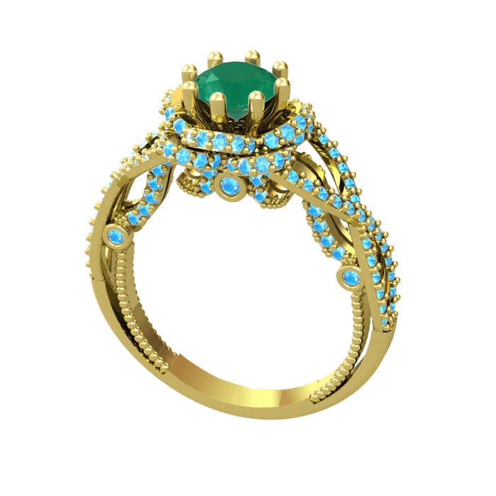 Kök zümrüt ve akuamarin 8 ayar altın yüzük