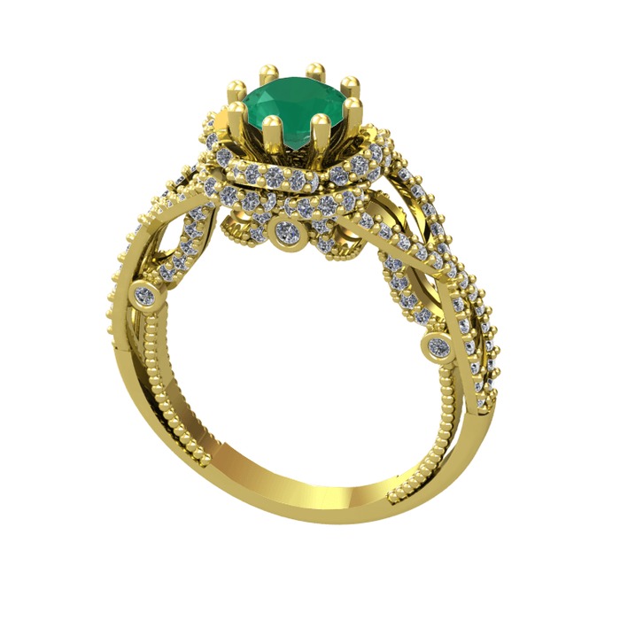 Kök zümrüt ve beyaz zirkon 18 ayar altın yüzük