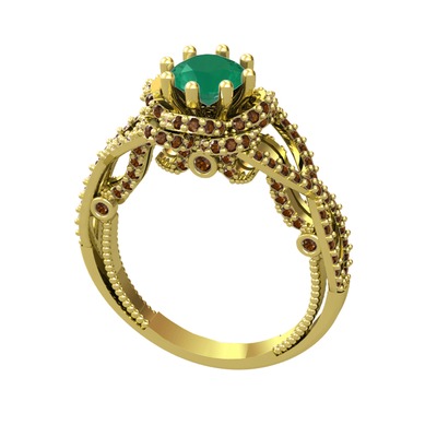 Kök zümrüt ve dumanlı kuvars 18 ayar altın yüzük