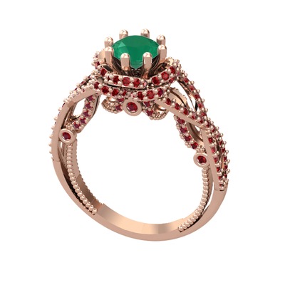 Kök zümrüt ve garnet 8 ayar rose altın yüzük