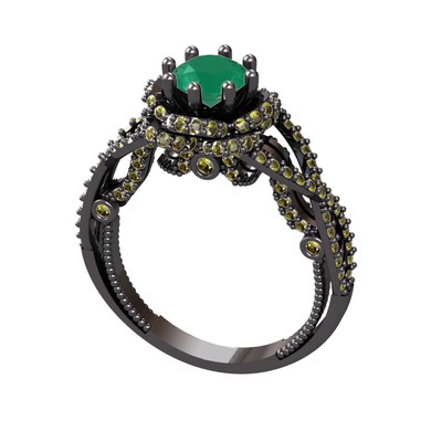 Kök zümrüt ve peridot 925 ayar siyah rodyum kaplama gümüş yüzük