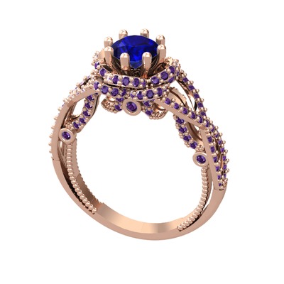 Lab safir ve ametist 925 ayar rose altın kaplama gümüş yüzük