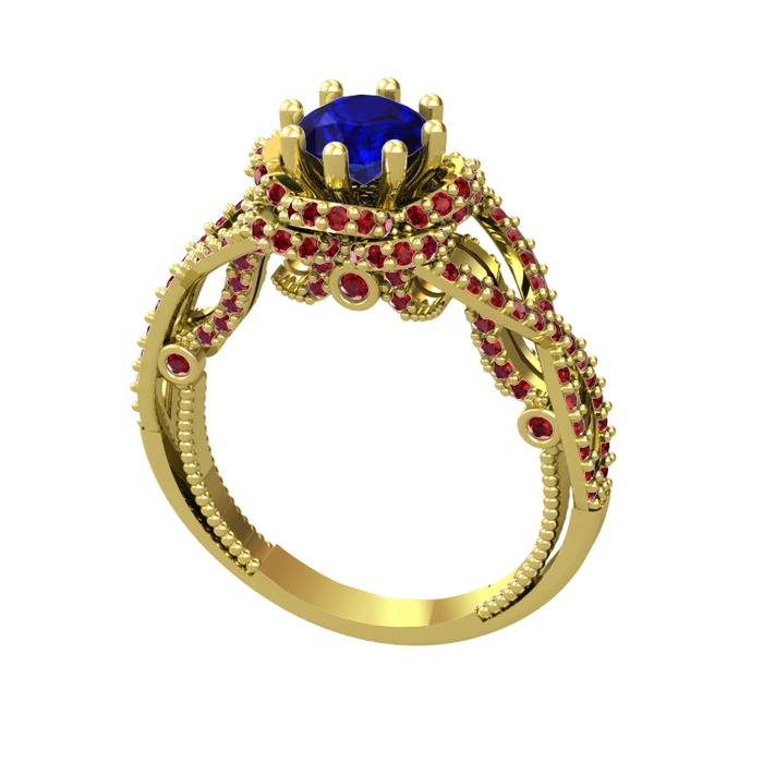 Lab safir ve garnet 925 ayar altın kaplama gümüş yüzük