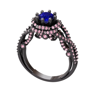 Lab safir ve pembe kuvars 925 ayar siyah rodyum kaplama gümüş yüzük