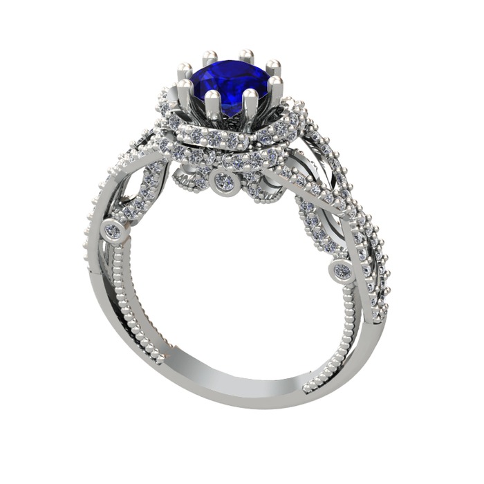 Lab safir ve swarovski 8 ayar beyaz altın yüzük
