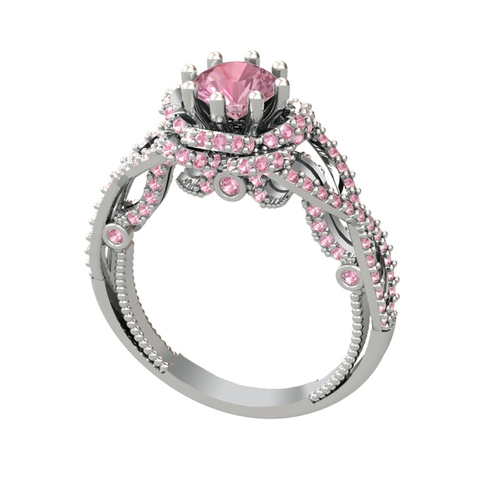 Pembe kuvars 14 ayar beyaz altın yüzük