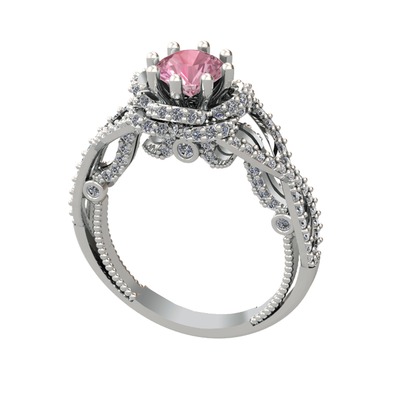 Pembe kuvars ve pırlanta 18 ayar beyaz altın yüzük (2.25 karat)