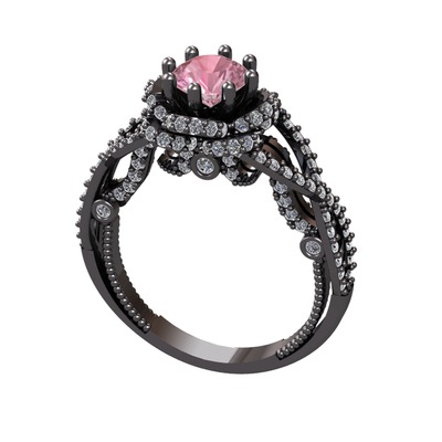Pembe kuvars ve pırlanta 925 ayar siyah rodyum kaplama gümüş yüzük (2.25 karat)