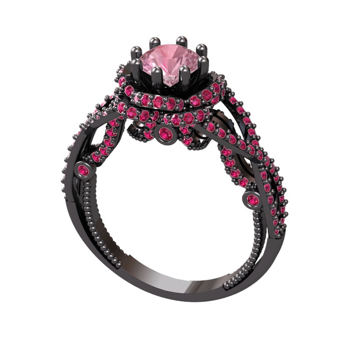 Pembe kuvars ve rodolit garnet 925 ayar siyah rodyum kaplama gümüş yüzük