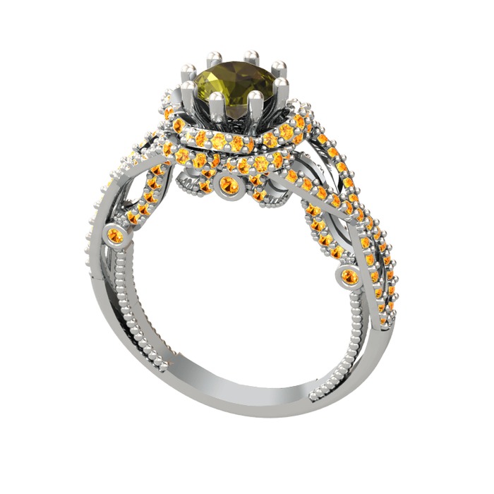 Peridot ve sitrin 18 ayar beyaz altın yüzük
