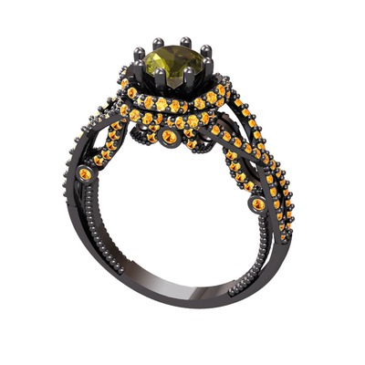 Peridot ve sitrin 925 ayar siyah rodyum kaplama gümüş yüzük