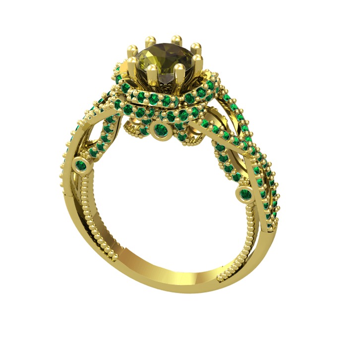 Peridot ve yeşil kuvars 18 ayar altın yüzük