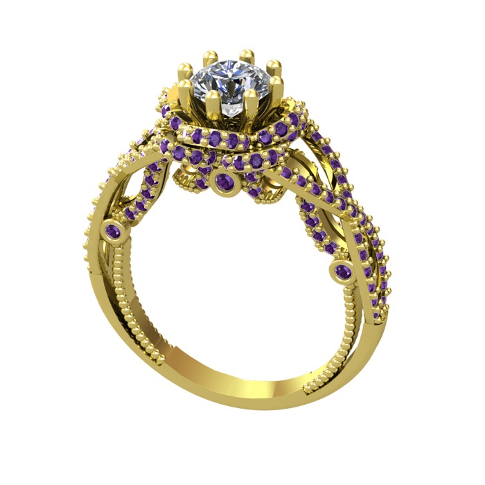 Pırlanta ve ametist 8 ayar altın yüzük (0.92 karat)