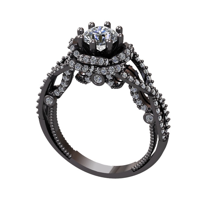 Pırlanta ve beyaz zirkon 925 ayar siyah rodyum kaplama gümüş yüzük (0.92 karat)