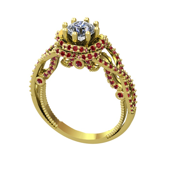 Pırlanta ve garnet 14 ayar altın yüzük (0.92 karat)