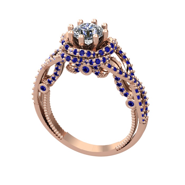 Pırlanta ve lab safir 18 ayar rose altın yüzük (0.92 karat)