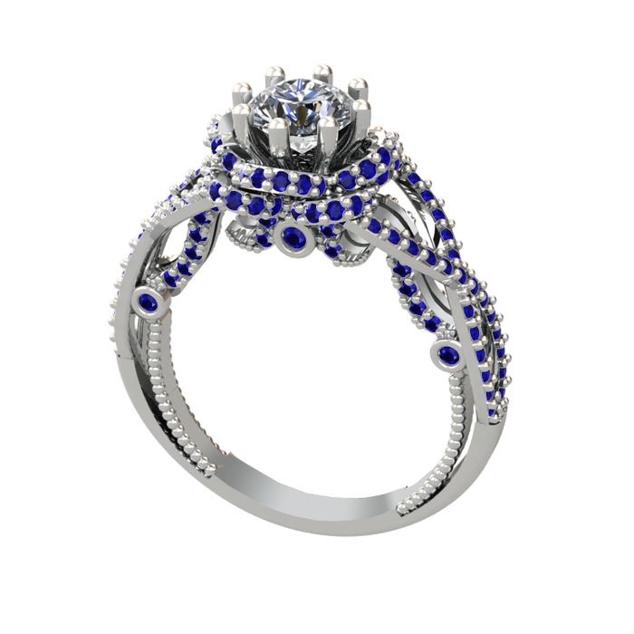 Pırlanta ve lab safir 925 ayar gümüş yüzük (0.92 karat)