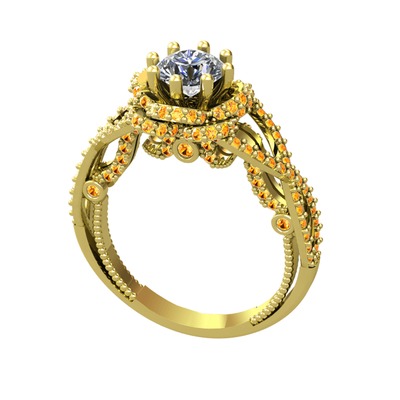 Pırlanta ve sitrin 18 ayar altın yüzük (0.92 karat)