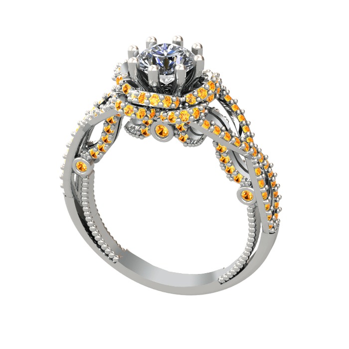 Pırlanta ve sitrin 8 ayar beyaz altın yüzük (0.92 karat)