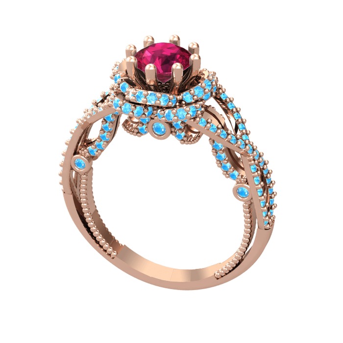 Rodolit garnet ve akuamarin 14 ayar rose altın yüzük