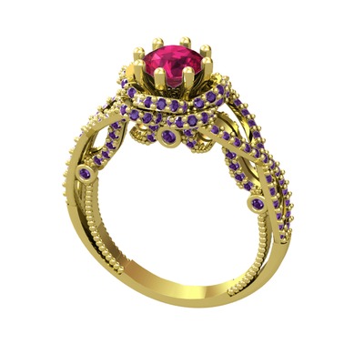 Rodolit garnet ve ametist 18 ayar altın yüzük