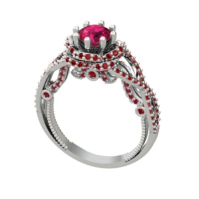 Rodolit garnet ve garnet 14 ayar beyaz altın yüzük