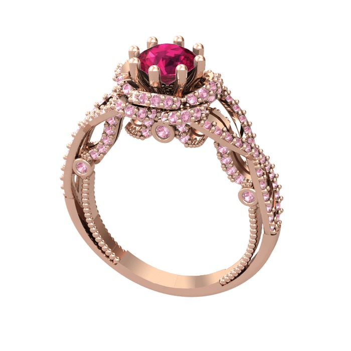 Rodolit garnet ve pembe kuvars 8 ayar rose altın yüzük