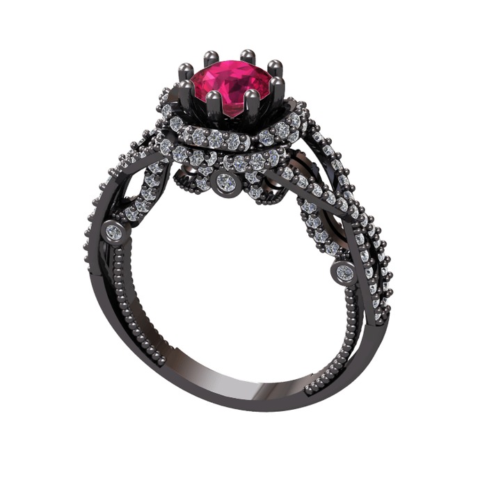 Rodolit garnet ve pırlanta 925 ayar siyah rodyum kaplama gümüş yüzük (2.25 karat)