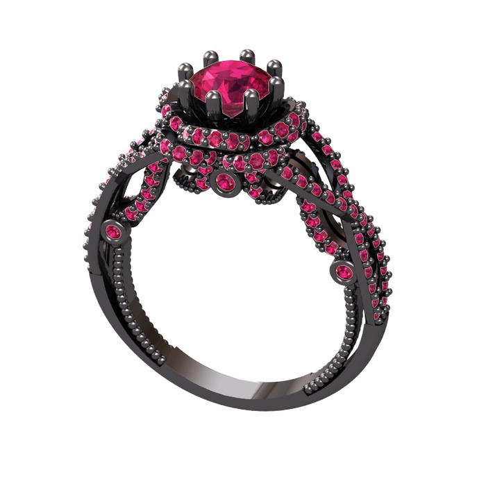 Rodolit garnet 925 ayar siyah rodyum kaplama gümüş yüzük