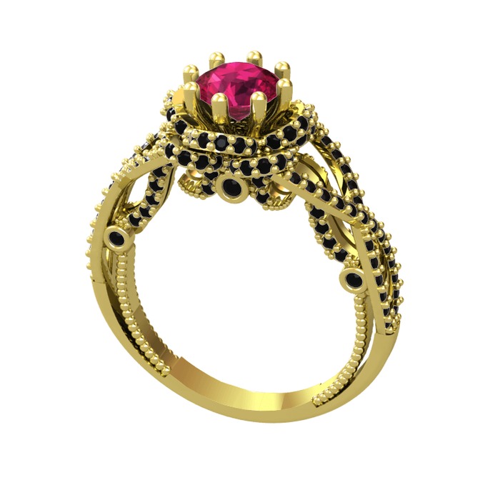 Rodolit garnet ve siyah zirkon 8 ayar altın yüzük
