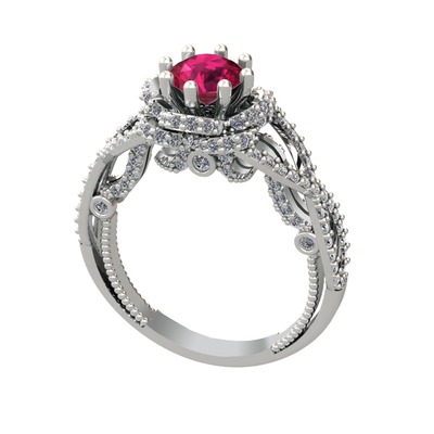 Rodolit garnet ve swarovski 8 ayar beyaz altın yüzük