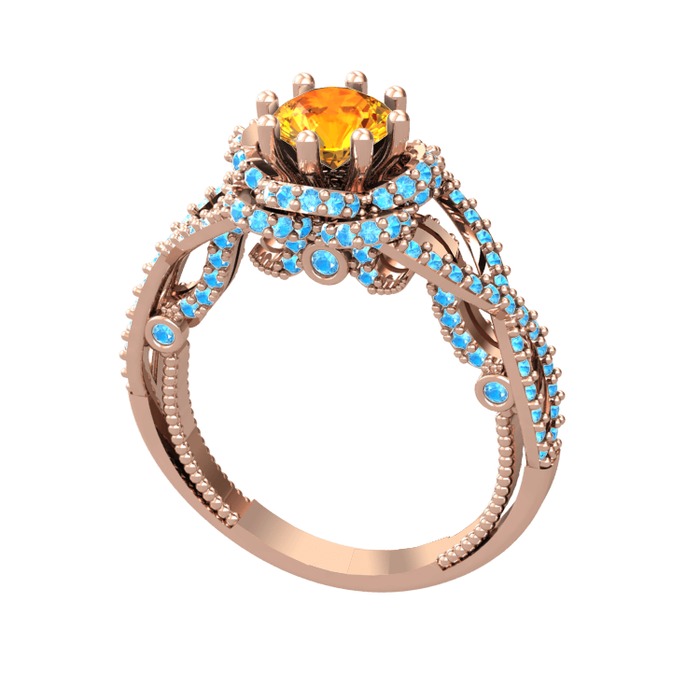 Sitrin ve akuamarin 8 ayar rose altın yüzük