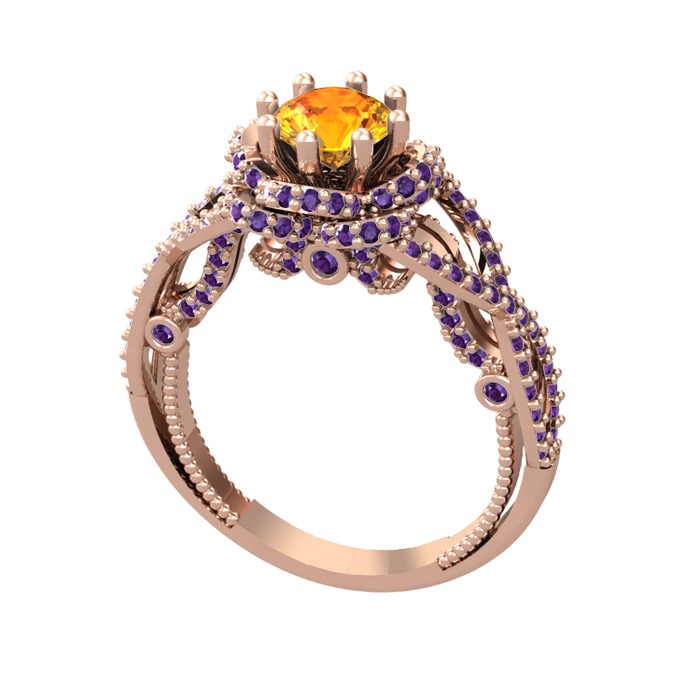 Sitrin ve ametist 8 ayar rose altın yüzük