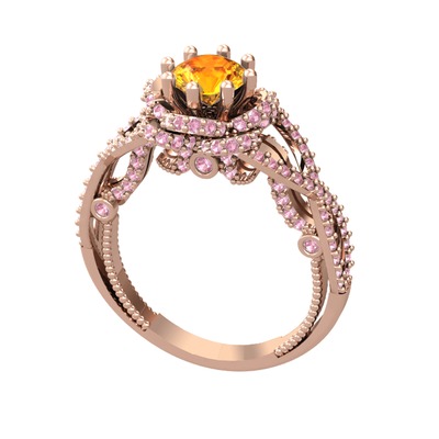 Sitrin ve pembe kuvars 8 ayar rose altın yüzük