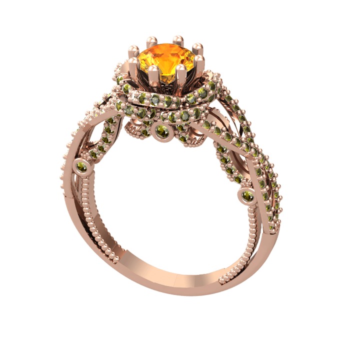 Sitrin ve peridot 18 ayar rose altın yüzük