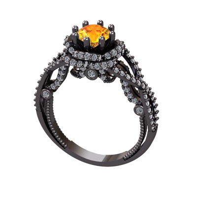 Sitrin ve pırlanta 925 ayar siyah rodyum kaplama gümüş yüzük (2.25 karat)
