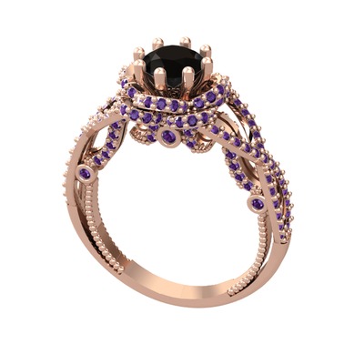 Siyah zirkon ve ametist 8 ayar rose altın yüzük