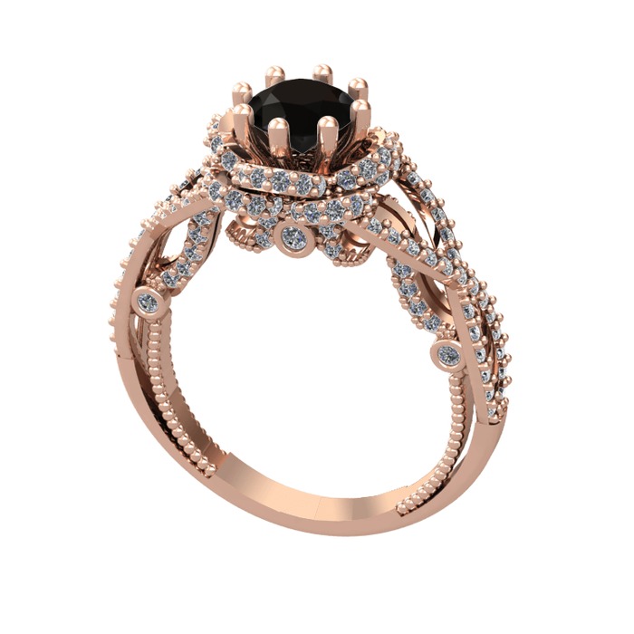 Siyah zirkon ve beyaz zirkon 925 ayar rose altın kaplama gümüş yüzük