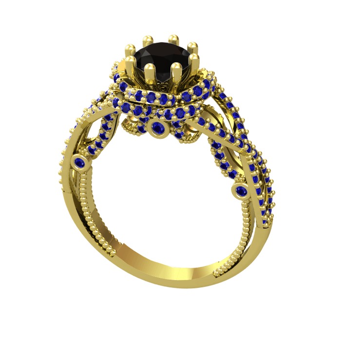 Siyah zirkon ve lab safir 14 ayar altın yüzük