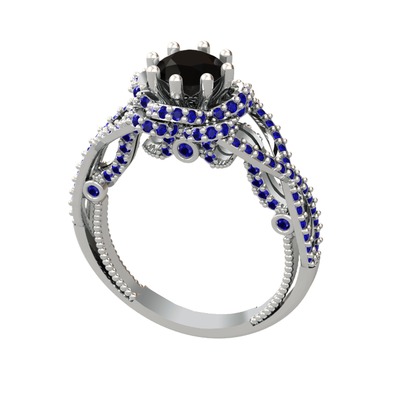 Siyah zirkon ve lab safir 18 ayar beyaz altın yüzük