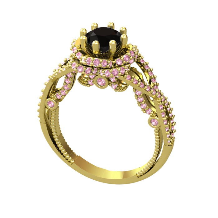 Siyah zirkon ve pembe kuvars 925 ayar altın kaplama gümüş yüzük