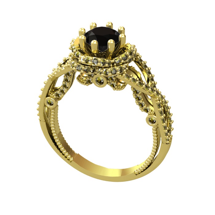Siyah zirkon ve peridot 14 ayar altın yüzük