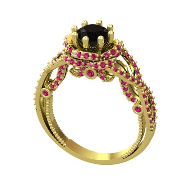 Siyah zirkon ve rodolit garnet 14 ayar altın yüzük