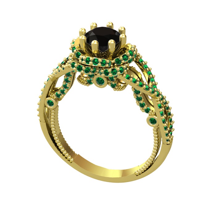 Siyah zirkon ve yeşil kuvars 18 ayar altın yüzük