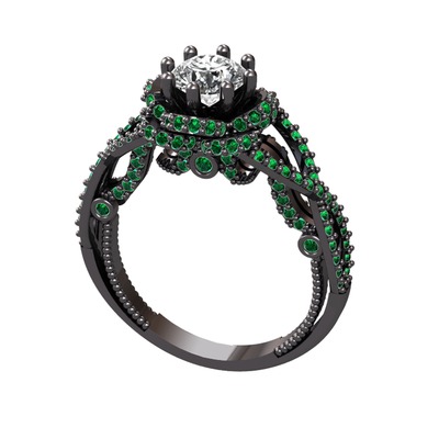 Swarovski ve yeşil kuvars 925 ayar siyah rodyum kaplama gümüş yüzük