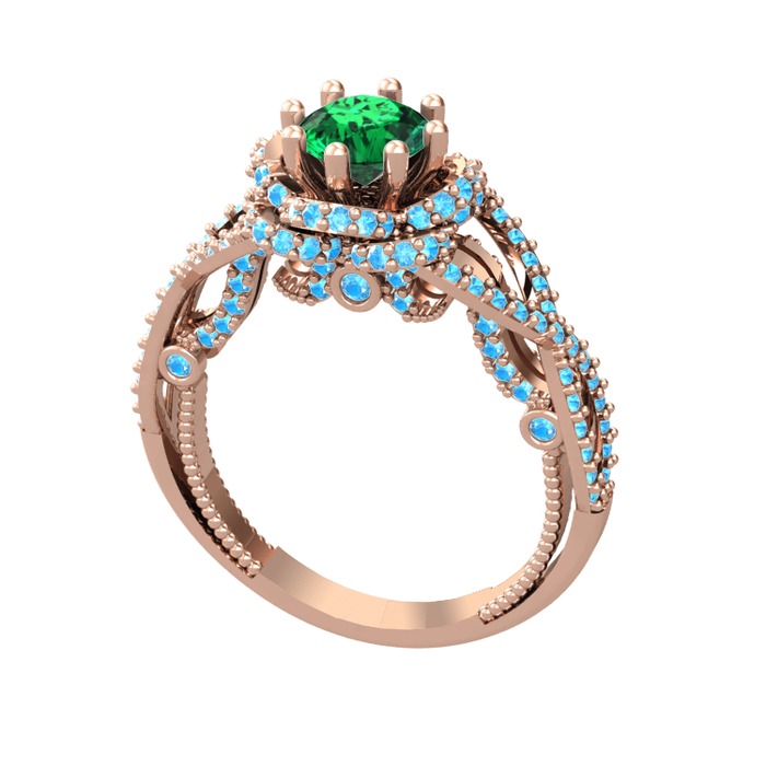Yeşil kuvars ve akuamarin 14 ayar rose altın yüzük