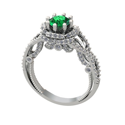Yeşil kuvars ve beyaz zirkon 8 ayar beyaz altın yüzük