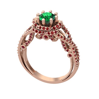 Yeşil kuvars ve garnet 18 ayar rose altın yüzük