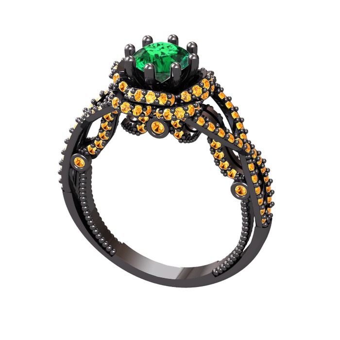 Yeşil kuvars ve sitrin 925 ayar siyah rodyum kaplama gümüş yüzük
